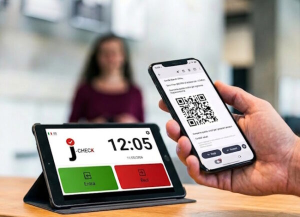 - Lettore QR integrato per una gestione accessi visitatori rapida con ENTRATA/USCITA automatizzata.